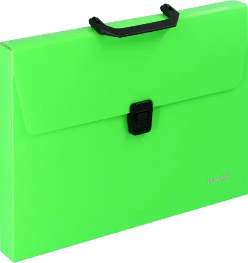 Портфель формата А4 из высококачественного двухслойного пластика: внешняя поверхность яркого неонового цвета, а внутренняя часть - белого. Предназначен для транспортировки документов. Портфель имеет 1 отделение и вмещает до 350 бумажных листов. Оснащен удобным замком и эргономичной ручкой.