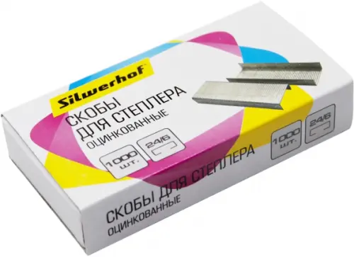 Скобы для степлера "Silwerhof", оцинкованные, 24/6, 1000 штук