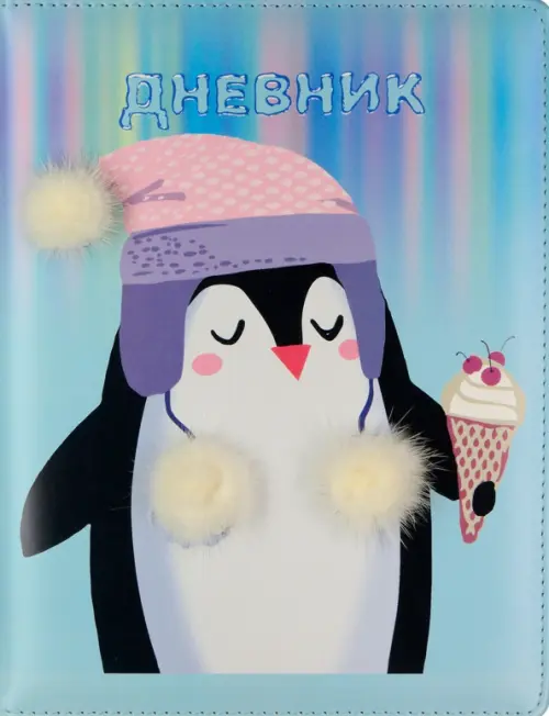 Милый пингвин с пушистыми помпонами украшает обложку школьного дневника и вызывает неподдельное умиление у учеников.