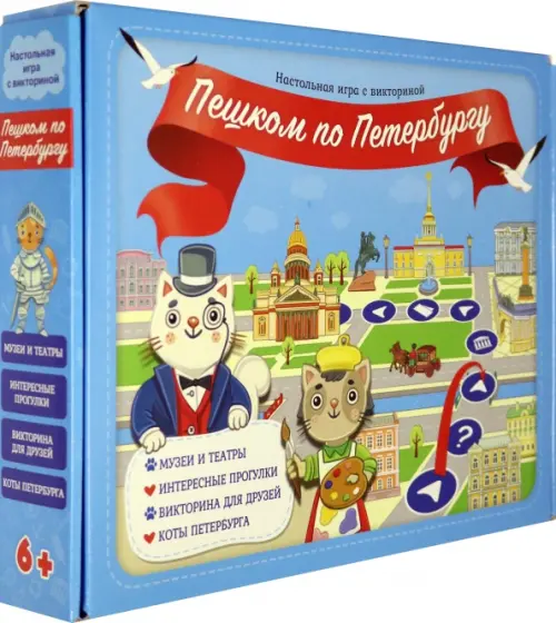 Хорошая настолка краеведческой направленности российского производства посвященная Санкт-Петербургу. Прогулку по Северной столице предлагается совершить в компании симпатичных котиков. Двигаться предстоит по историческому центру. Сопровождать это можно беседой с юными участниками о памятниках, зданиях, людях и событиях. Каждую партию можно открыват...