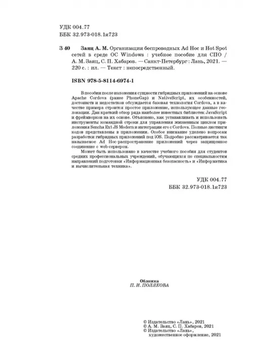 Если вы обнаружили ошибку в описании товара «Организация беспроводных Ad Hoc и Hot Spot сетей в среде ОС Windows» (авторы: Заяц Анатолий Моисеевич, Хабаров Сергей Петрович), то выделите её мышкой и нажмите Ctrl+Enter. Спасибо, что помогаете нам стать лучше!
