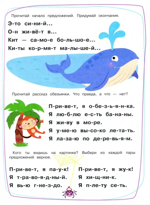 Занятия по этому тренажёру предполагают, что ребёнок не только должен прочитать предложения и словосочетания, но и выполнить задания. Таким образом, у малыша появится мотивация для чтения. Он поймёт, для чего нужно уметь читать — чтобы узнавать что-то новое. Кроме того, выполнение заданий будет способствовать развитию у малыша речи, логики, внимания и памяти. Ребёнок получит множество знаний об окружающем мире, научится выполнять различные мыслительные операции: сравнение, анализ, синтез и т.д. Таким образом, каждое задание не только тренирует навыки чтения малыша, но и делает процесс обучения комплексным, ставя перед ребёнком сразу несколько задач, а заодно превращает упражнения в весёлую игру.