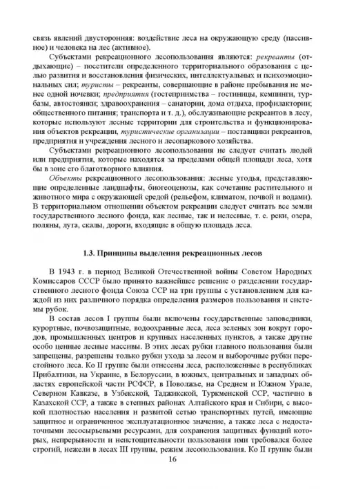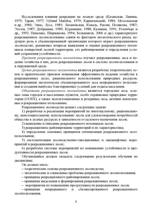 Материалом послужили научные труды отечественных и зарубежных ученых, результаты исследований авторов в области рекреационного лесоводства и длительный опыт в преподавании предмета.