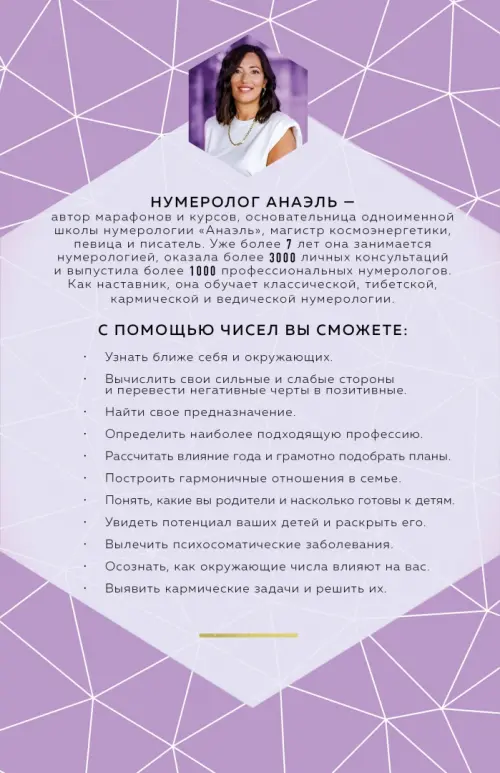 Легко и просто нумеролог Анаэль и основательница одноименной школы познакомит вас с числами. С нуля вы научитесь работать с матрицей Пифагора, дополнительными, кармическими и магическими числами, нумерологией имени. Данные инструменты помогут вам лучше узнать себя и окружающих, найти свое предназначение и профессию, найти идеального партнера и построить гармоничные отношения в семье, понять своего ребенка и помочь ему раскрыть его сильные стороны. Помимо этого, числа подскажут к каким болезням вы расположены и как их избежать, а также укажут на влияние года, чтобы вы знали, что от него ждать и грамотно построили свои планы.