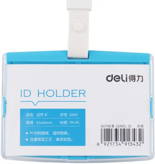 Бейдж горизонтальный для пропуска "Deli", цвет: голубой, 91х67 мм, арт. 8304blue