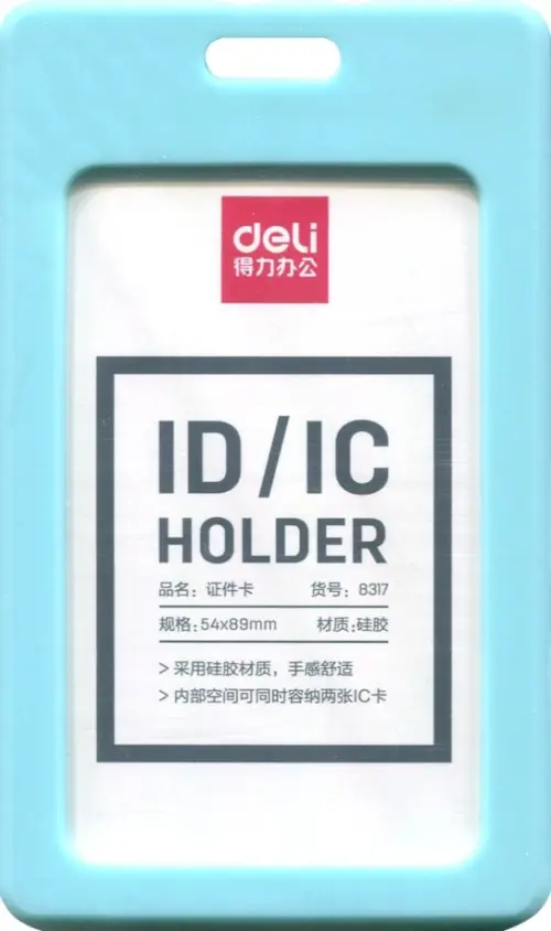 Бейдж вертикальный для пропуска "Deli", цвет: голубой, 54х89 мм, арт. 8317blue