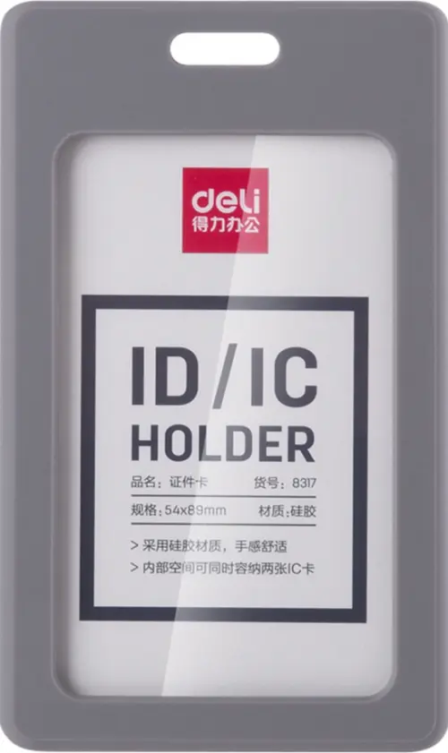 Бейдж вертикальный для пропуска "Deli", цвет: серый, 54х89 мм, арт. 8317gray