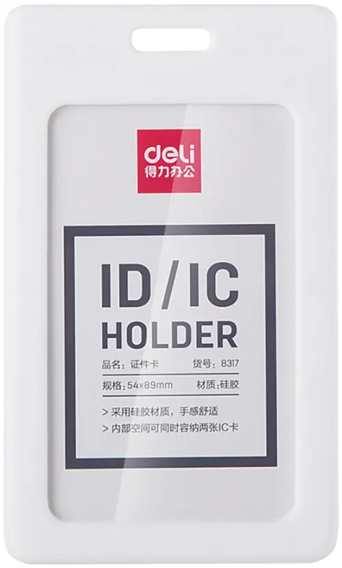 Бейдж вертикальный для пропуска "Deli", цвет: белый, 54х89 мм, арт. 8317white
