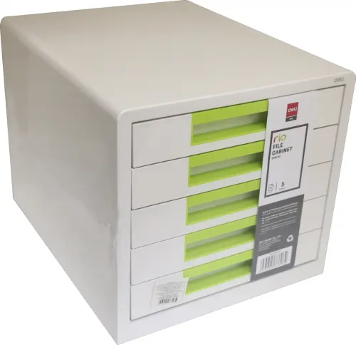 Бокс для документов "Deli. Rio", цвет: белый, зеленый, 5 выдвижных ящиков, 277х344х259 мм