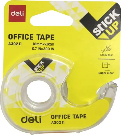 Клейкая лента канцелярская Deli кристально-прозрачная. Ширина ленты: 18 мм. Длина: 7.62 м. Широко используется в бытовой, банковской и офисной сфере. Идеально подходит для склеивания порванных документов, страниц, денежных купюр - после наклейки на бумагу практически не заметна. В комплект входит диспенсер для облегчения пользования клейкой лентой. Нетоксичный акриловый клей. Благодаря компактному размеру лента не займет много места на рабочем столе и с лёгкостью поместится в любой пенал.