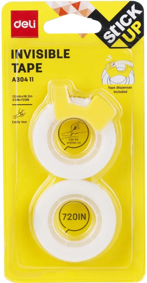 Клейкая лента канцелярская Deli. Ширина ленты: 12 мм. Длина: 18.3 м. Широко используется в бытовой, банковской и офисной сфере. Идеально подходит для склеивания порванных документов, страниц - после наклейки на бумагу практически не заметна. На ней можно писать. В комплект входит компактный диспенсер для облегчения пользования клейкой лентой. Нетоксичный акриловый клей. Благодаря небольшому размеру лента не займет много места на рабочем столе и с лёгкостью поместится в любой пенал. В упаковке 2 шт.