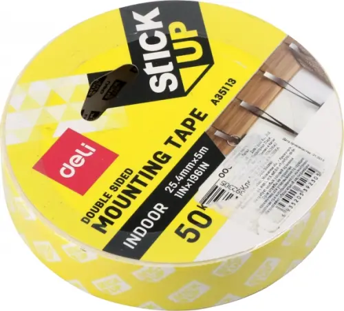 Клейкая лента монтажная двусторонняя "Deli", цвет: белый, 25,4 мм x 5 м, арт. EA35113