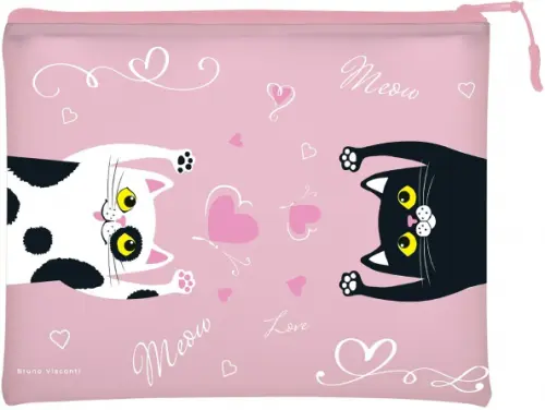 Папка на молнии "Кошки-потягушки", цвет розовый