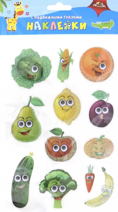 Наклейки с подвижными глазками "Забавные овощи и фрукты"