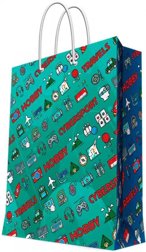 Пакет бумажный "Мужские увлечения", 17,8x22,9x9,8 см