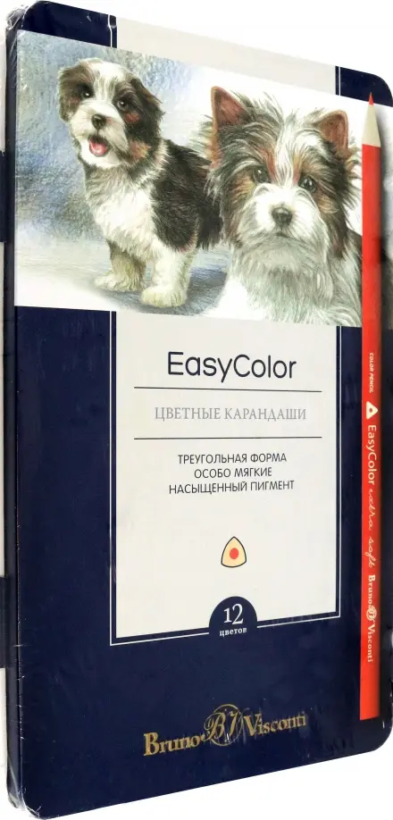 Карандаши цветные "Bruno Visconti. Easycolor", 12 цветов, в металлической коробке c ложементом