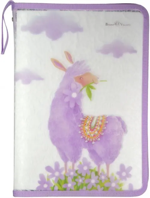 Папка на молнии с окантовкой "Лавандовая лама", А4, 1 штука