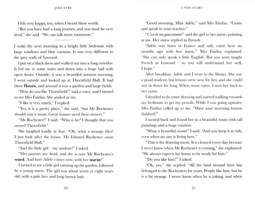With carefully adapted text, new illustrations, language practise activities and additional online resources, the Penguin Readers series introduces language learners to bestselling authors and compelling content. Titles include popular classics, exciting contemporary fiction, and thought-provoking non-fiction. Jane Eyre, a Level 4 Reader, is A2+ in the CEFR framework. The text is made up of sentences with up to three clauses, introducing more complex uses of present perfect simple, passives, phrasal verbs and simple relative clauses. It is well supported by illustrations, which appear regularly. Jane goes to work at Thornfield Hall as a governess for the strange Mr Rochester. They become friends, and she is finally happy. But Mr Rochester is going to marry the beautiful Blanche Ingram, and soon Jane must leave Thornfield forever.