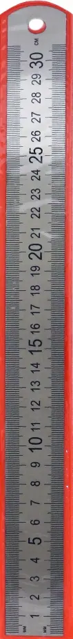 Линейка 30 см, стальная, в мягком пластиковом чехле. С одной стороны шкала в сантиметрах, с другой в дюймах.