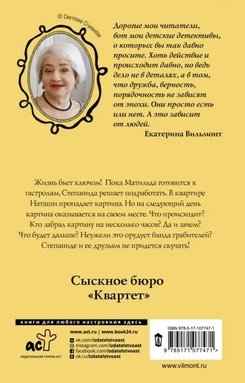 Если вы обнаружили ошибку в описании товара «Секрет исчезающей картины» (авторы: Вильмонт Екатерина Николаевна), то выделите её мышкой и нажмите Ctrl+Enter. Спасибо, что помогаете нам стать лучше!