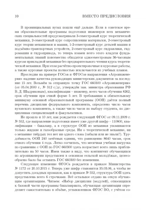 В учебном пособии кратко изложен курс технической механики, рассчитанный на один-два семестра обучения при подготовке бакалавров по направлению «Агроинженерия». Пособие включает в себя основные разделы дисциплин «Теоретическая механика», «Теория механизмов и машин», «Сопротивление материалов», «Детали машин и основы конструирования», «Взаимозаменяемость, стандартизация и технические измерения» и может быть использовано также студентами других технических и технологических направлений при освоении каждой из перечисленных дисциплин. Краткость изложения делает пособие ценным подспорьем при ограниченных сроках на подготовку как в семестре, так и в период сессии. Помимо краткости, пособие отличается от имеющихся учебных изданий сжатым очерком современного состояния механики в новой России, демонстрацией инженерных приложений компьютерных пакетов (MathCad, CosmosWorks, Inkscape, AutoCad, LaTeX и др.), обновленными данными по машиностроительным материалам — от композитов до перспектив использования графена, примерами конструкций узлов в современных машинах, наличием сведений о зарубежных стандартах в машиностроении. Даны примеры как простых, так и сложных инженерных расчетов. В конце каждой главы приведены вопросы для самоконтроля.
