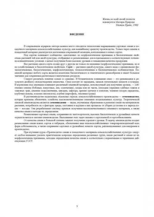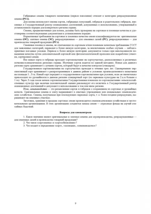 В пособии изложены вопросы повышения качества посевного материала, особенности формирования партий семян, показатели физико-механических свойств семян, определение посевных качеств, правила отбора проб для определения посевных качеств, методика определения чистоты и массы семян, всхожести и энергии прорастания, заселенности семенного и посадочного материала вредителями и зараженности болезнями, установления кондиционности и категории семян, их сертификация. Рассмотрены практические вопросы определения различных групп, видов растений и семян по их морфологическим признакам, методам определения качества семян. Изложены технологии возделывания основных полевых культур на семенные цели. Приведены термины и определения.