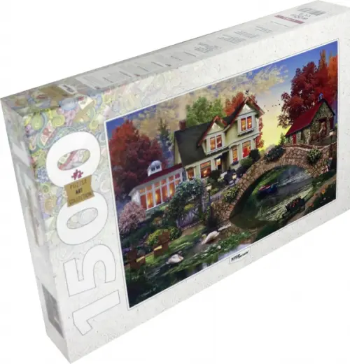 Пазл «Тихое утро» состоит из 1500 элементов и входит в серию «Art collection». Его картинка показывает нам начало дня где-то в тихой деревне или на окраине города. Тут уютно: лебеди в пруду, красивый каменный мост, дом в огнях и краски рассвета.