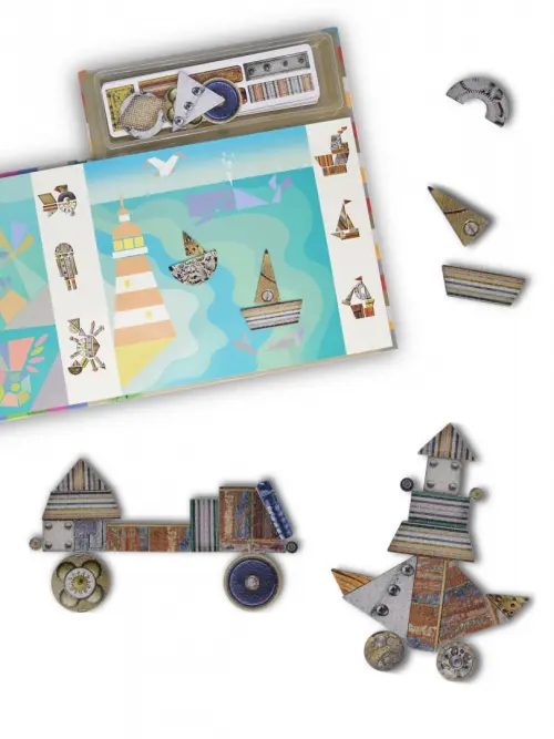 На каждой странице есть подсказки - фон (морской, лесной и пр.) и несколько моделей для сборки.