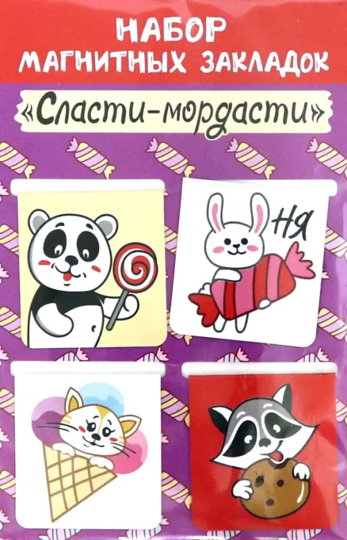 Закладки магнитные Сласти мордасти, 4 штуки, 47х49 мм