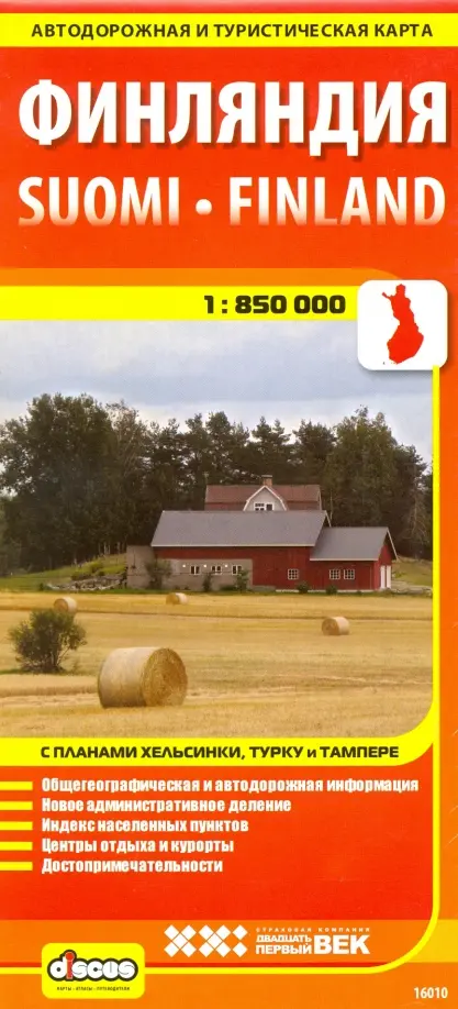 В представленном издании вы найдете подробную карту Финляндии в формате 1:850000, а также планы столичного региона Хельсинки и городов Турку и Тампере.