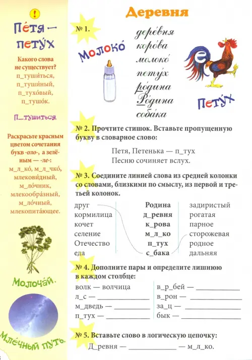 Пособие разнообразит словарную работу на уроках и дома. Материал, приведенный в нем, превратит непростую работу в интересное занятие, расширит представления детей о русском языке. Стихи Л. Жукова. Составители Н. Астахова, Т. Бруссель.