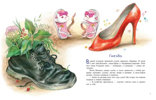 Герои этой необычной истории — настоящая семья, обитающая… в обувнице! Большой папа-Ботинок, аккуратная мама-Туфля и непоседливые сестрёнки-Сандалии. Все живут весело и дружно, а ещё с ними постоянно происходит что-то интересное. Юные читатели с удовольствием узнают, кому помог заботливый папа, как мама научила дочек завязывать ремешки, с кем познакомились сестрички и кого не хватало в обувнице…