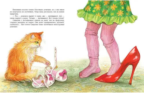Отличная книга от любимого издательства, как всегда качественная, с твёрдой обложкой и платными мелованными листами. Чудесные иллюстрации, красочные, они оживляют эту книгу. В истории есть обаятельный котик и много обуви, но эта обуви олицетворена, а мы с детьми так любим, когда предметы нашего дома оживают! Прекрасно, когда с детьми модно потом...