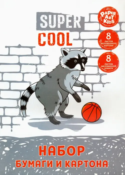 Набор цветной мелованной бумаги и картона "Енот-баскетболист", 16 листов, 8 цветов