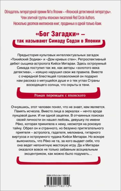 Токио, 1978 год. Некий человек пришел в себя на скамейке в совершенно незнакомом месте и постепенно понял, что ничего не помнит о прошлой жизни и вообще не знает, кто он такой. Кроме того, обнаружил, что вместо своего лица видит в зеркалах нечто вроде пунцовой дыни. В безнадежной ситуации ему на помощь пришла девушка Рёко, они полюбили друг друга и поселились вместе. Неизвестный принял имя Кэйсукэ Исикава. Не видя иной попытки выяснить хоть что-то о себе, он обратился к чудаковатому астрологу Киёси Митараи, заведя с ним приятельские отношения. Однако помогли вовсе не звезды, а случай: Кэйсукэ нашел первый ключ к разгадке. В вещах Рёко. Воспользовавшись этим ключом, он обрушил на себя целый водопад шокирующих открытий. И разобраться в них сможет только Митараи, имеющий способности, о которых Кэйсукэ и не догадывался…
