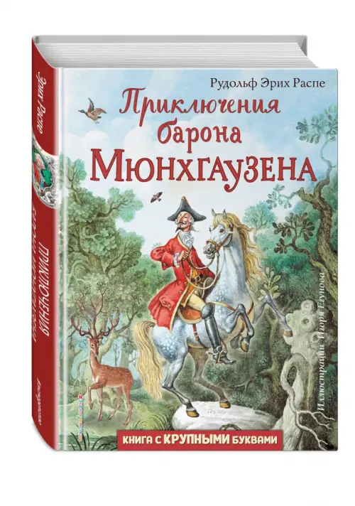 Прочитать эту книжку будет легко каждому! Специальный крупный шрифт оптимально подходит для удобного чтения. За чтением увлекательных рассказов остроумного выдумщика барона Мюнхгаузена и разглядыванием великолепных иллюстраций Игоря Егунова соберётся вся семья: и старшее поколение, и те, кто только учится читать. Мюнхгаузен расскажет читателю, как он пролетел на пушечном ядре, с одного раза подстрелил семь куропаток, выбрался из брюха огромной рыбы и даже побывал на Луне. А верить ли в эти фантастические приключения - решать читателю!