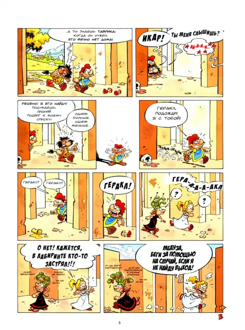 В новой книге «Мифята. Великий Икар» французские авторы Казнов и Ларбье продолжают радовать тех, кому не безразлична судьба героев греческих мифов. Здесь вы практически не встретите карающих, величественных богов, за исключением Зевса, Посейдона, ну, может, еще парочки. Боги, полубоги и герои попадают в нелепые ситуации, вечно всё путают, принимают неверные решения и делают так, чтобы их жизнь протекала весело и беззаботно. А всё потому, что они еще дети.