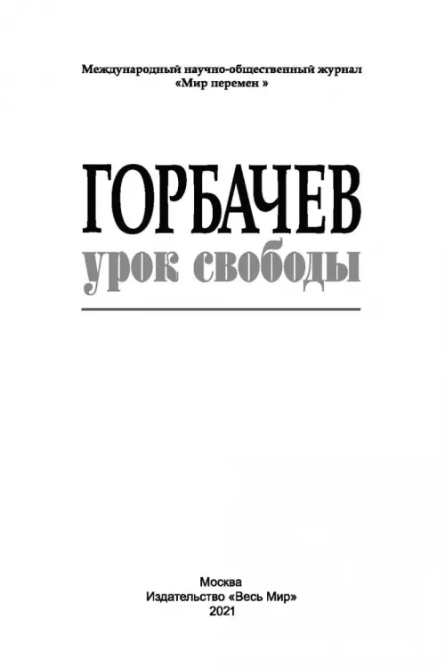 Если вы обнаружили ошибку в описании товара «Горбачев. Урок свободы», то выделите её мышкой и нажмите Ctrl+Enter. Спасибо, что помогаете нам стать лучше!