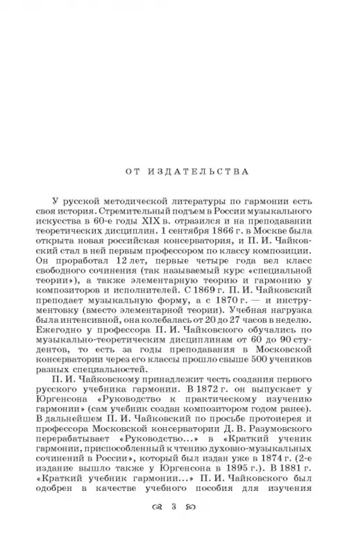 P.I. Tchaikovsky through his work as a teacher at the Moscow Conservatory was promoting the spread of theoretical information about music to the general public. This was the reason to write the textbook, where sequentially and constructively expounded the basis of the discipline.