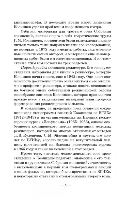 The present edition of the famous Soviet film director, People's Artist of the USSR Grigory Mikhailovich Kozintsev (1905–1973) contains his works on film directing and on comic, eccentric and grotesque art, as well as the book “Our Contemporary William Shakespeare” (on working on various stagings of works by English poet and playwright). The work is provided with notes, an index of names and titles.