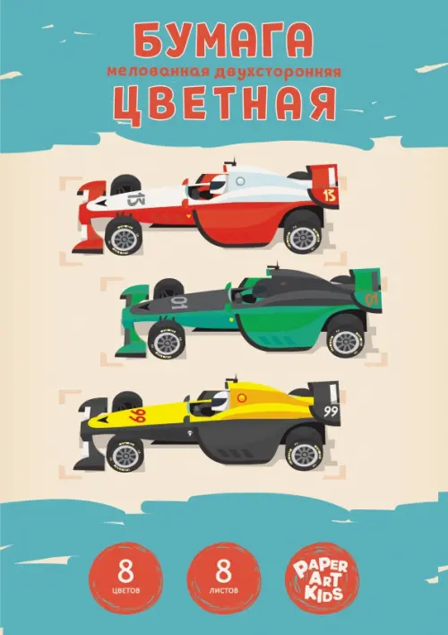 Набор цветной двухсторонней мелованной бумаги "Rally", 8 листов, 8 цветов