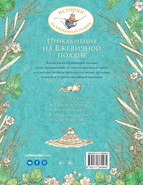 "Приключения на Ежевичной поляне" - это сборник, включающий в себя рассказы "Высокие холмы", "Дети Фиалочки", "Тайная лестница" и "Морская история".