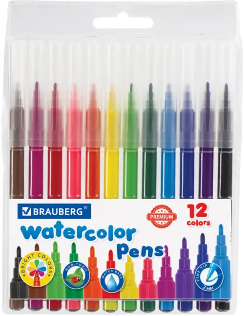 Набор фломастеров "Premium" с насыщенными, яркими цветами в количестве 12 штук. Чернила на водной основе практически не имеют запаха, не токсичны и легко смываются с большинства материалов и тканей.