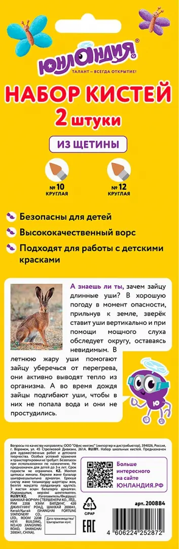 Набор из двух кистей разного размера "Юнландия" позволяет начинающим художникам решать любые творческие задачи в детском саду, школе и дома.