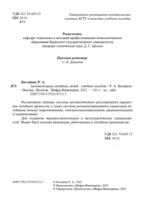 Если вы обнаружили ошибку в описании товара «Автоматизация литейных печей» (авторы: Богданов Роман Александрович), то выделите её мышкой и нажмите Ctrl+Enter. Спасибо, что помогаете нам стать лучше!