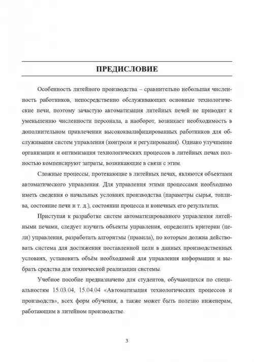 Рассмотрены типовые системы автоматического регулирования параметров литейных процессов, а также системы автоматизированного управления литейными печами (мартеновскими, электросталеплавильными, нагревательными и термическими).