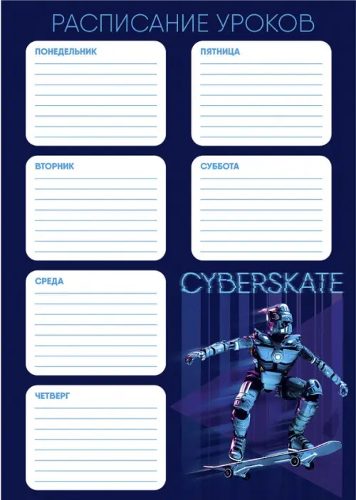 Если вы обнаружили ошибку в описании товара «Расписание уроков. Робот на скейте, А4», то выделите её мышкой и нажмите Ctrl+Enter. Спасибо, что помогаете нам стать лучше!