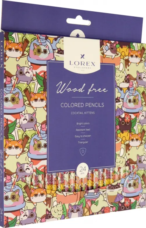 Карандаши цветные "Wood Free Cocktail kittens", 24 цвета