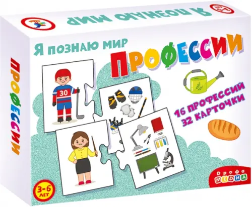 Отличная игра, изображения яркие, чёткие, узнаваемые. Большое разнообразие профессий. Картон плотный, крепкий. Половинки соединяются точно, не распадаются. Ребёнок 3-4 г с удовольствием и интересом играет в эту игру.