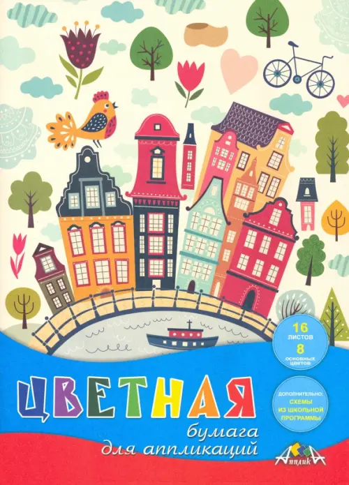 Цветная бумага "Яркий город", А4, 16 листов, 8 цветов